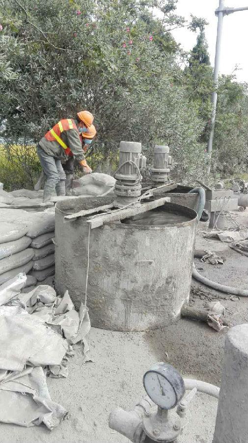 4.2.3將配制拌和好的化學(xué)漿和水泥漿各送入SS-400攪拌式貯漿桶內(nèi)備用。